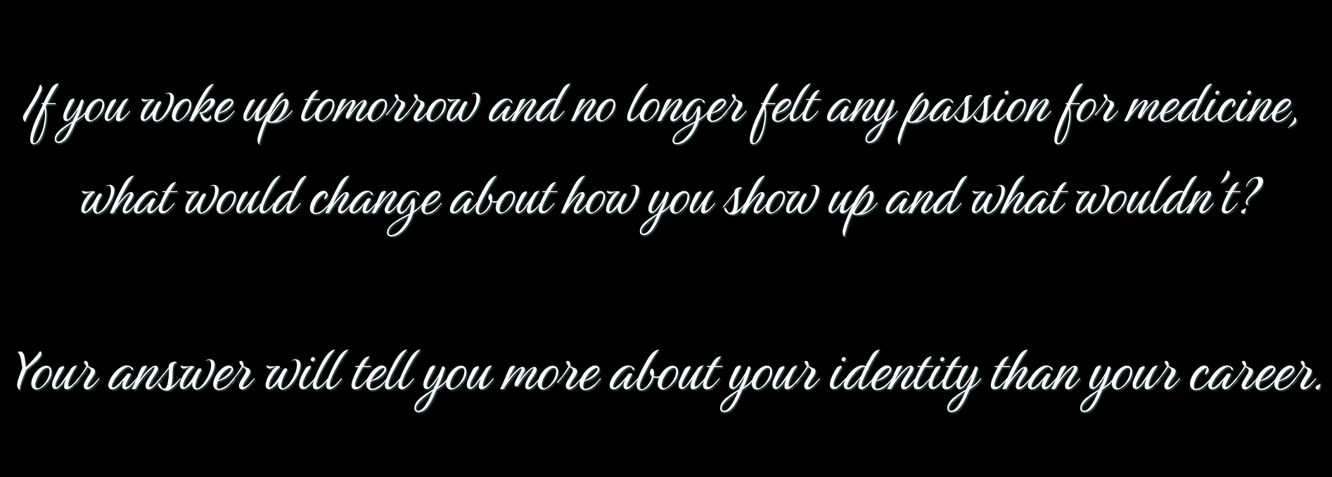 It's the answer to: why did I do this, why do I stay, what am I if not a doctor who loves medicine?